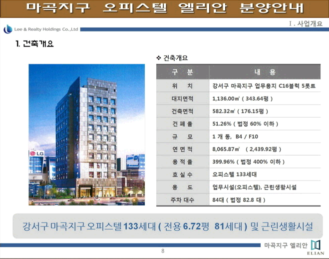마곡지구 엘리안 오피스텔은 전체 133세대중 81세대를